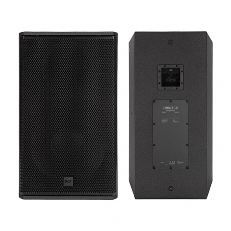 Loa RCF Compact C45 thiết kế đôi 2 đường tiếng, kết hợp củ loa trầm neodymium 15" (40cm) và trình điều khiển nén neodymium 4" (10.16cm). Điểm đặc biệt là ống dẫn sóng có khả năng xoay liên tục, tạo ra góc phủ âm 100° x 50° rộng rãi và nhất quán, đảm bảo âm thanh không bị biến dạng và đạt SPL cao.