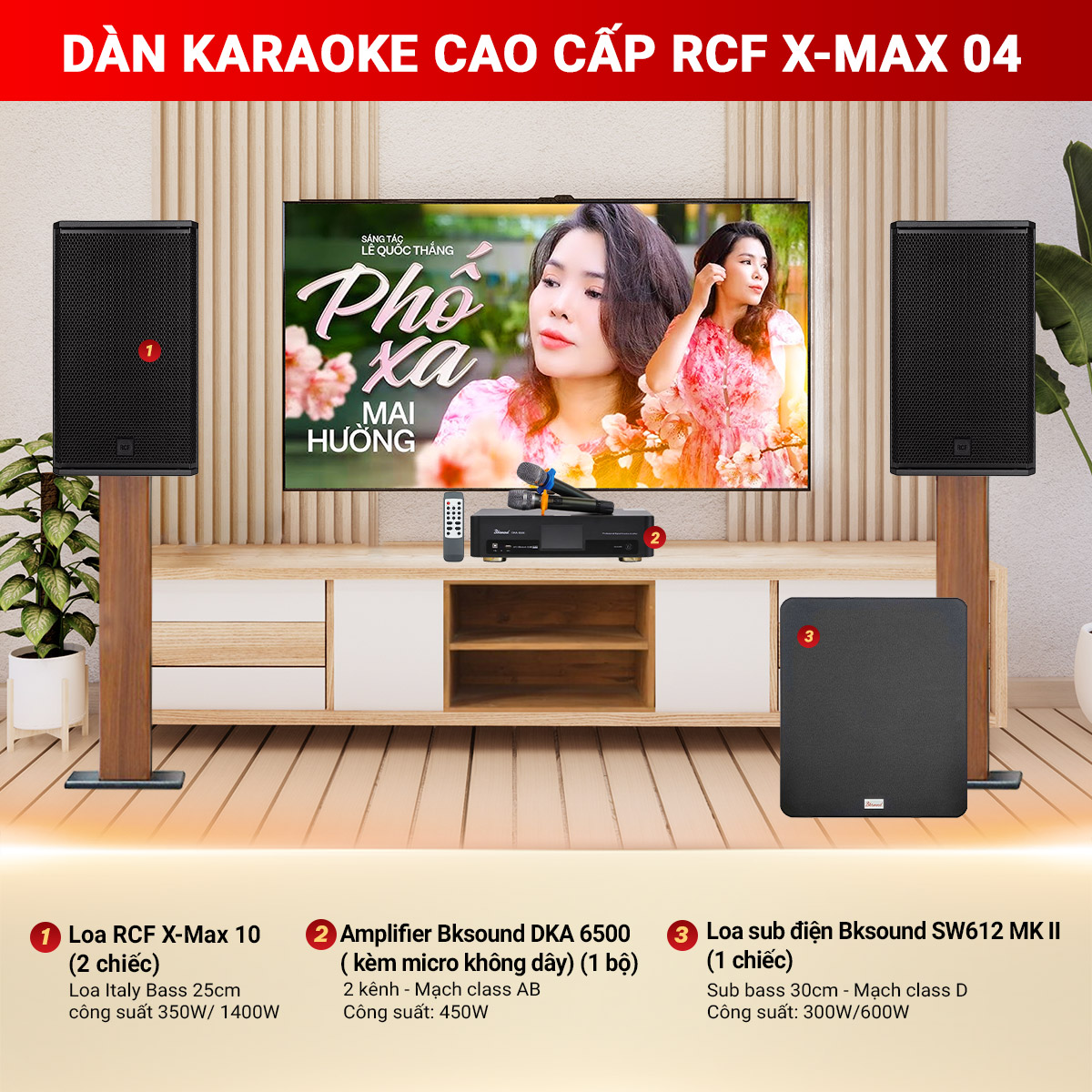 Cấu hình thiết bị dàn karaoke cao cấp RCF X-MAX 04 gồm: