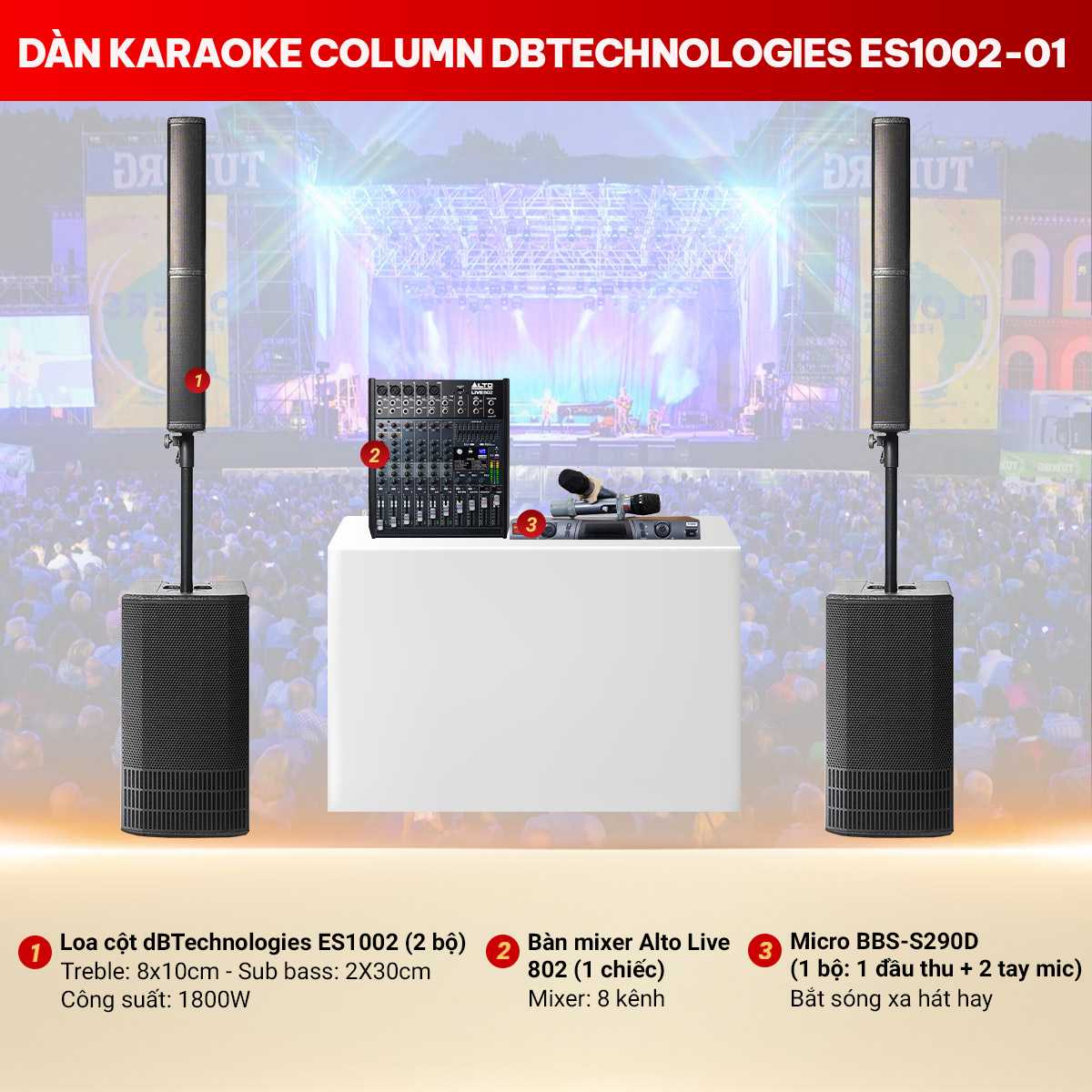 Cấu hình thiết bị có trong Dàn karaoke Column dBTechnologies ES1002-01 gồm: