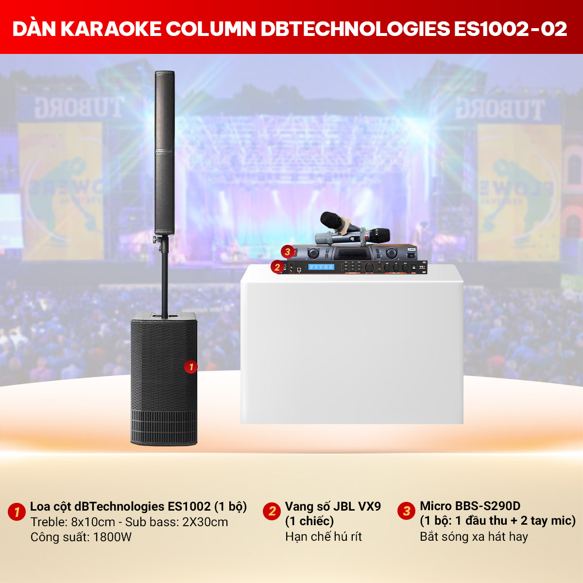 Cấu hình thiết bị có trong Dàn karaoke Column dBTechnologies ES1002-02 gồm: