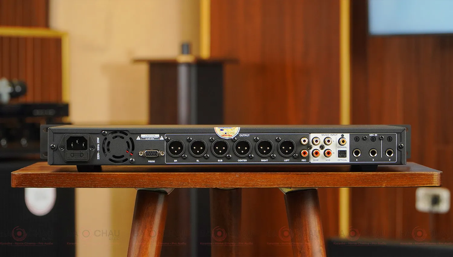 Với 15-band parametric EQ cho đầu vào nhạc và 20-band cho micro, thiết bị này cho phép bạn điều chỉnh chính xác từng dải tần, cân bằng âm sắc giữa nhạc và giọng hát để đạt độ rõ nét và hài hòa. Ngoài ra, VX9 hỗ trợ nhiều chế độ xử lý (filter, gain, delay, reverb…) để bạn có thể tinh chỉnh theo phong cách cá nhân hoặc phù hợp với đặc điểm phòng hát. Trong vận hành thực tế, vang số giúp loại bỏ tiếng hú rít hiệu quả nếu phối đúng kỹ thuật với micro và loa, đồng thời giữ cho giọng hát trong trẻo, không bị “véo” hay chói tai khi lên cao.