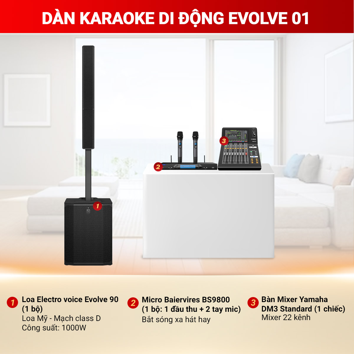 Với thiết kế tinh gọn, dễ sử dụng cùng cấu hình mạnh mẽ, Dàn karaoke di động Evolve 01 không chỉ là một dàn karaoke di động mà còn là giải pháp âm thanh chuyên nghiệp cho mọi không gian và mục đích sử dụng.