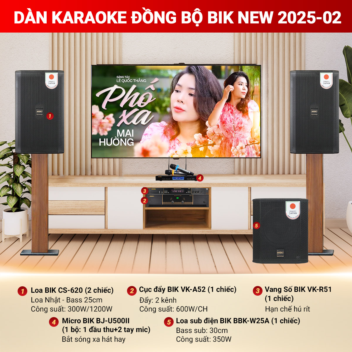 Hình thức giải trí karaoke tại nhà đang bùng nổ, nhu cầu đầu tư hệ thống âm thanh chất lượng, đồng bộ và bền bỉ ngày càng trở nên cấp thiết. Hiểu rõ xu hướng này, Bảo Châu Elec đã phối ghép bộ Dàn karaoke đồng bộ BIK New 2025-02 với các thiết bị chính hãng của BIK - thương hiệu âm thanh hàng đầu Nhật Bản, đáp ứng toàn diện các yêu cầu về công suất, chất lượng âm thanh và độ ổn định khi vận hành lâu dài!