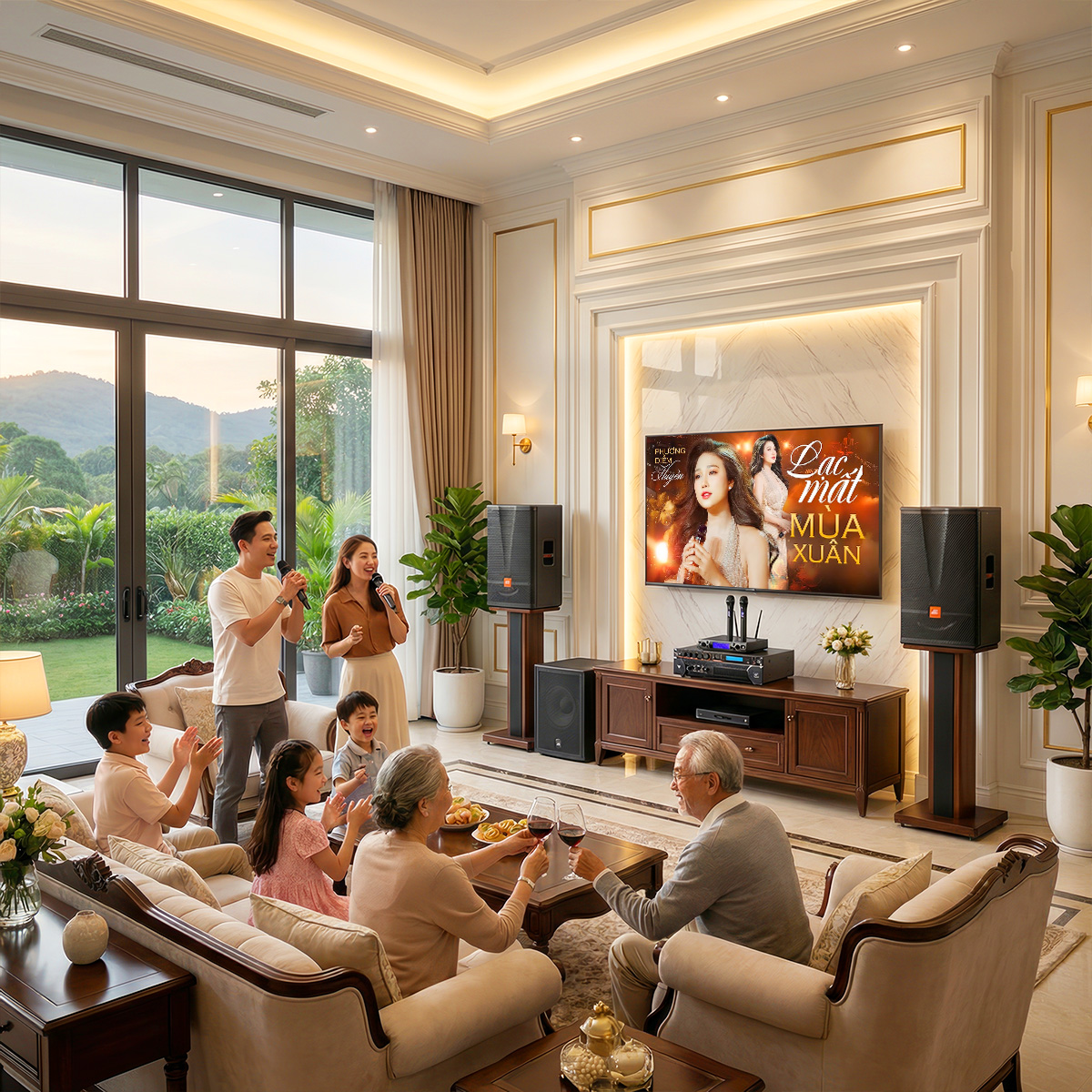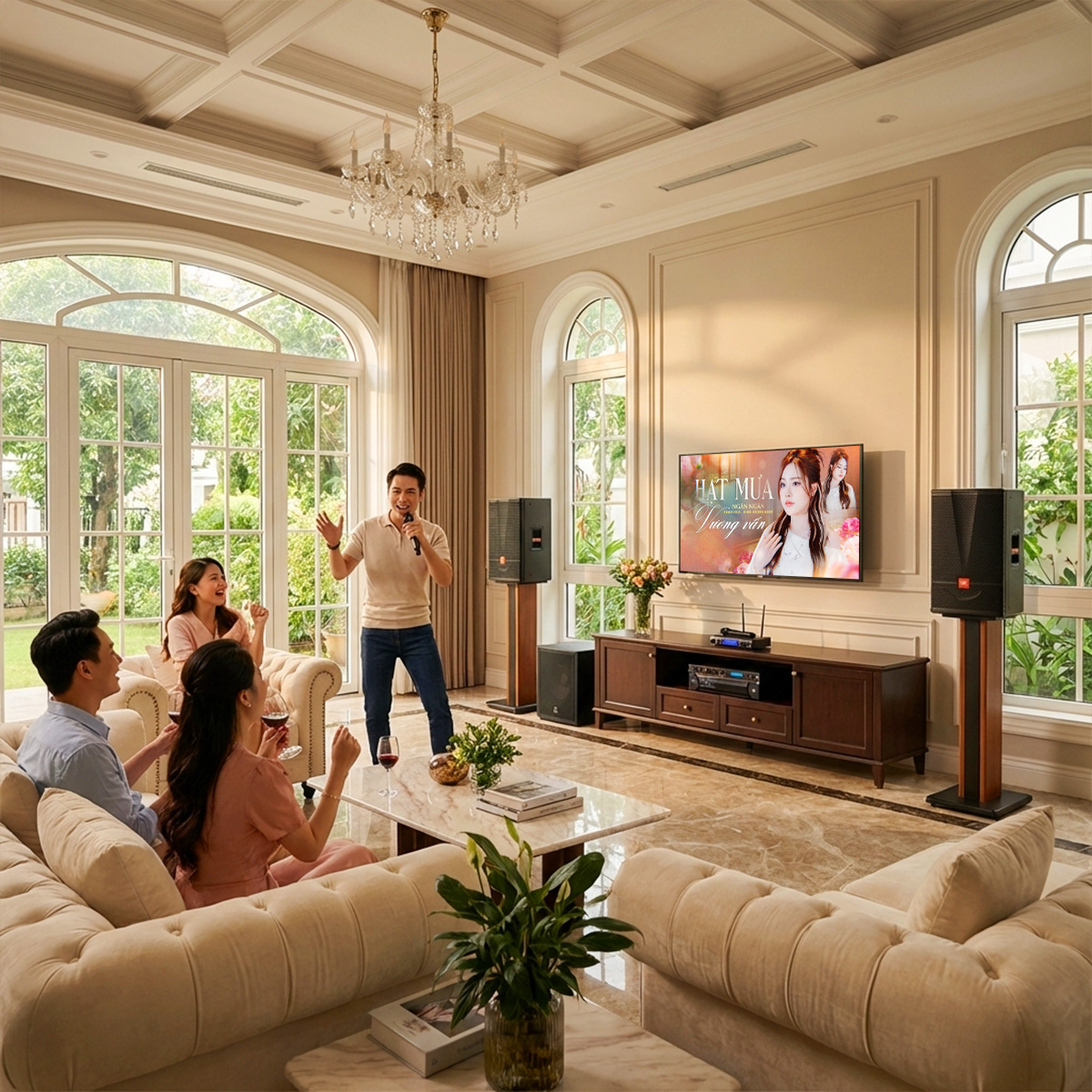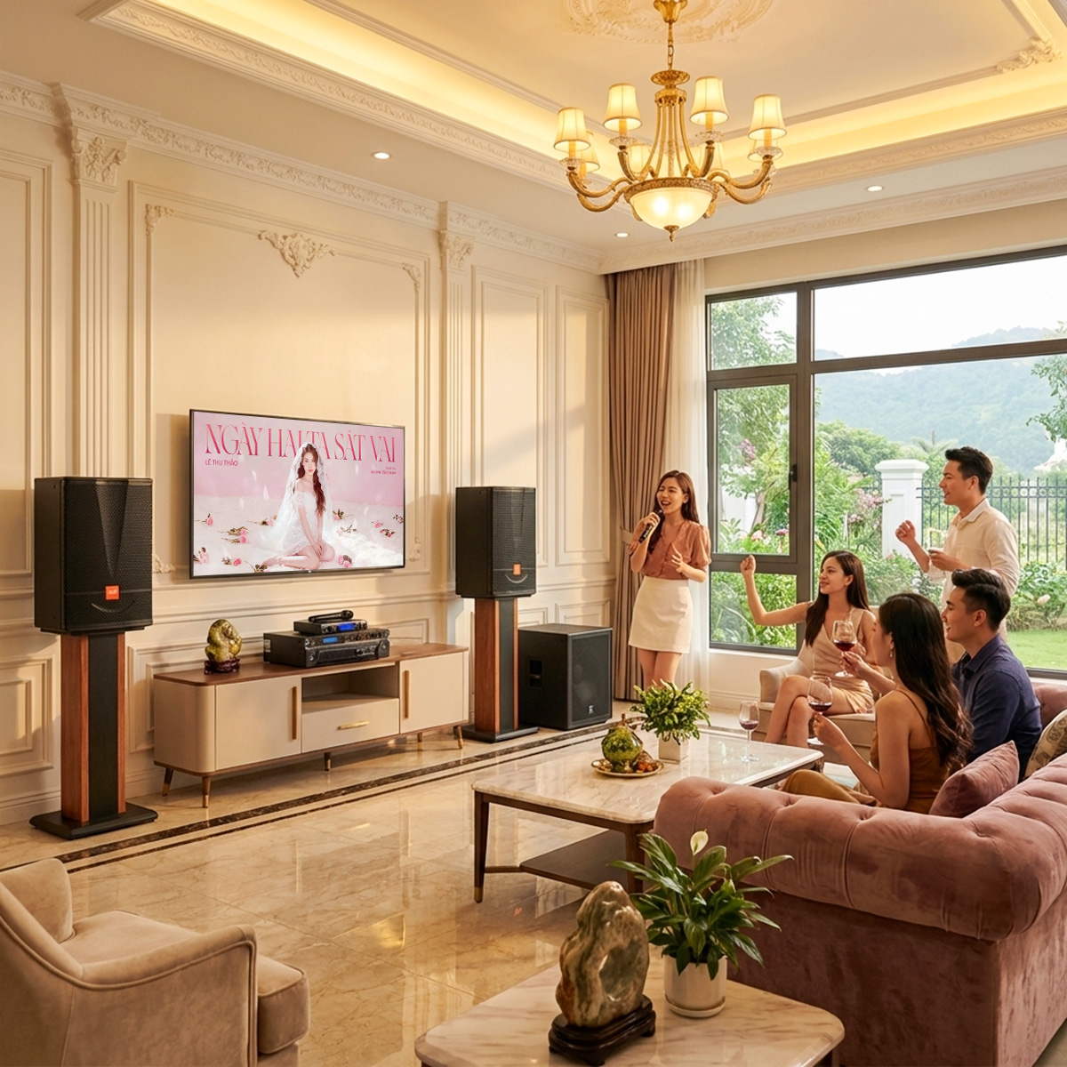 Dàn karaoke JBL Full đồng bộ 04 sở hữu cấu hình âm thanh hiện đại, được lựa chọn kỹ lưỡng từ những thiết bị âm thanh chính hãng đồng bộ thương hiệu JBL. Đây là bộ dàn karaoke Passive lý tưởng cho việc hát karaoke tại gia mà còn mang lại trải nghiệm âm nhạc chất lượng, không thua kém gì các chương trình biểu diễn chuyên nghiệp.
