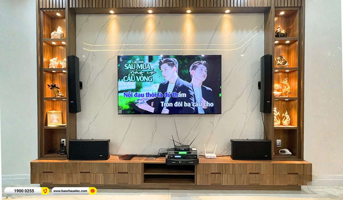 Bảo Châu Elec tiếp tục khẳng định vị thế đơn vị thi công và lắp đặt dàn karaoke chuyên nghiệp hàng đầu Việt Nam khi bàn giao bộ dàn karaoke gia đình gắn tường Audiocenter trị giá hơn 57 triệu đồng cho anh Thương tại TP HCM. Bộ dàn được phối ghép đồng bộ, mang đến chất lượng âm thanh mạnh mẽ, chi tiết và sang trọng – đáp ứng hoàn hảo nhu cầu giải trí gia đình cao cấp.