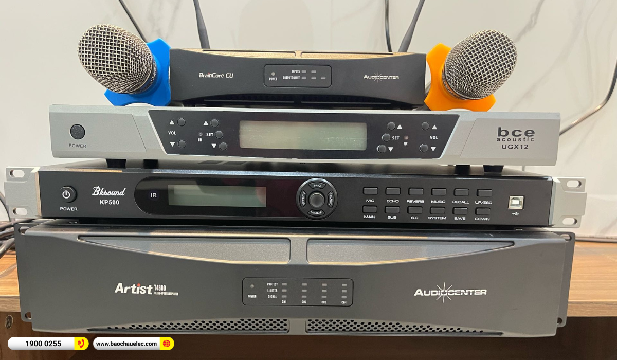 Cung cấp năng lượng cho toàn bộ hệ thống là cục đẩy 4 kênh Audiocenter Artist T4800, nổi bật với hiệu suất cao, độ méo thấp và khả năng hoạt động bền bỉ suốt nhiều giờ liền. Bksound KP500 là vang số được Bảo Châu Elec lựa chọn nhờ khả năng xử lý tiếng micro cực mượt, chống hú rít hiệu quả và cho phép tinh chỉnh chi tiết từng dải tần.