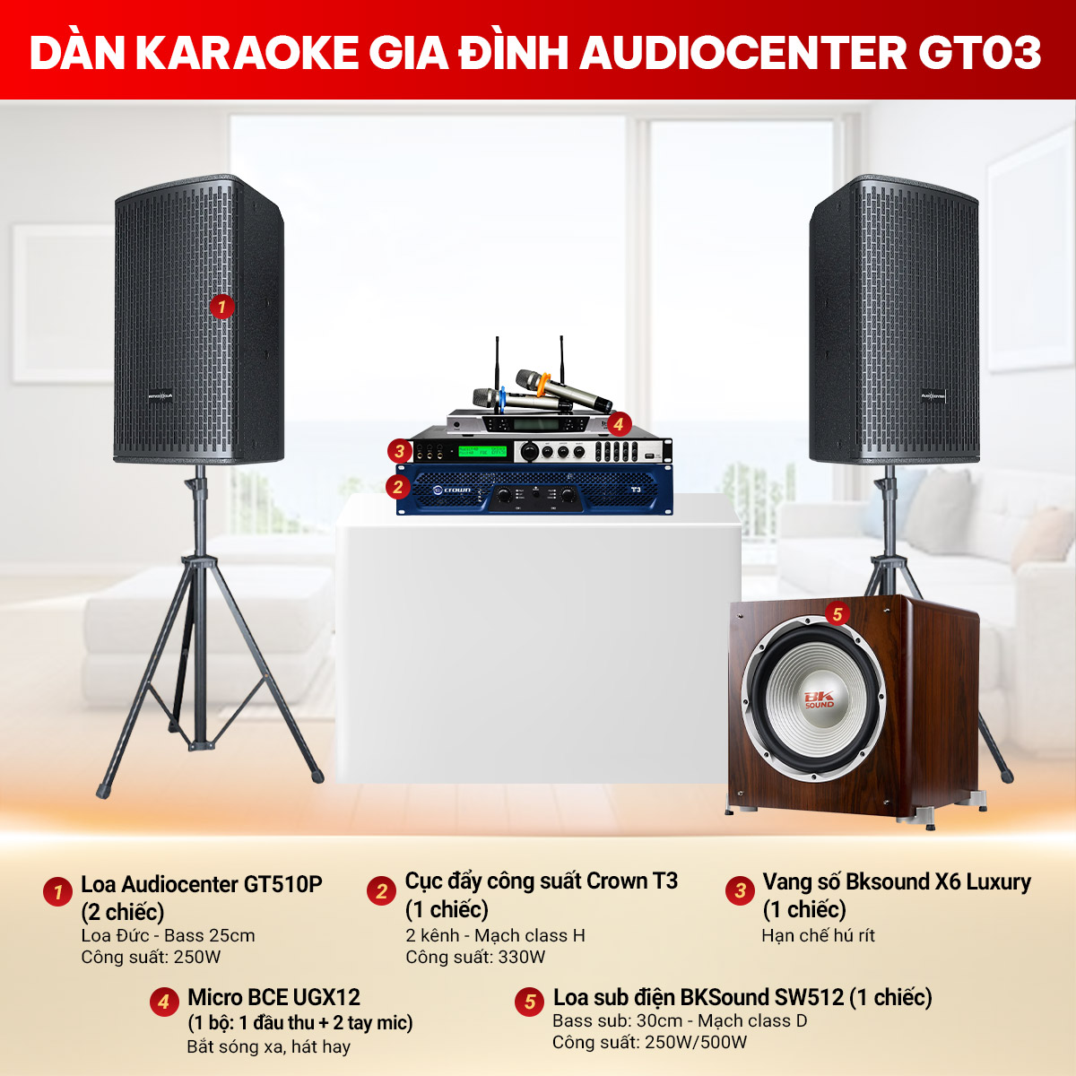 Cấu hình Dàn karaoke gia đình Audiocenter GT03 gồm: