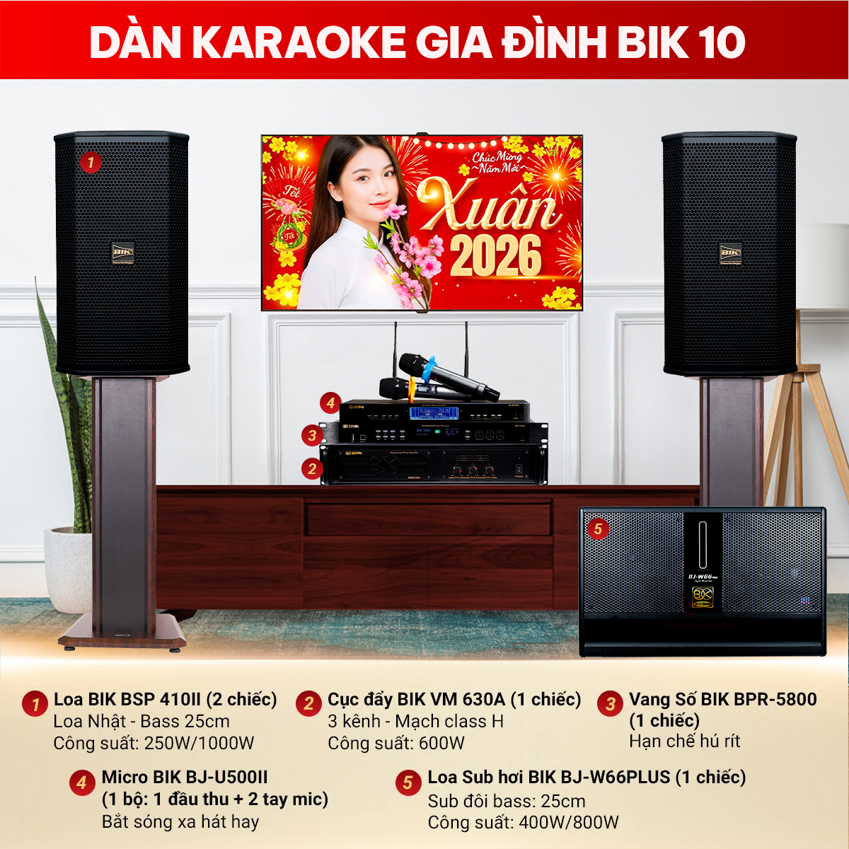 Cấu hình chi tiết Dàn karaoke gia đình BIK 10
