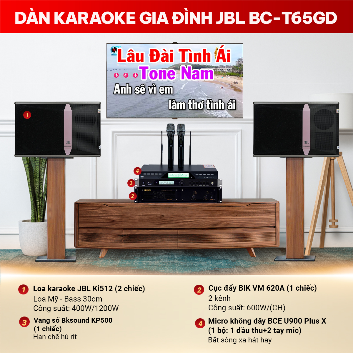 Cấu hình của Dàn karaoke gia đình BC-T65GD bao gồm các thiết bị: