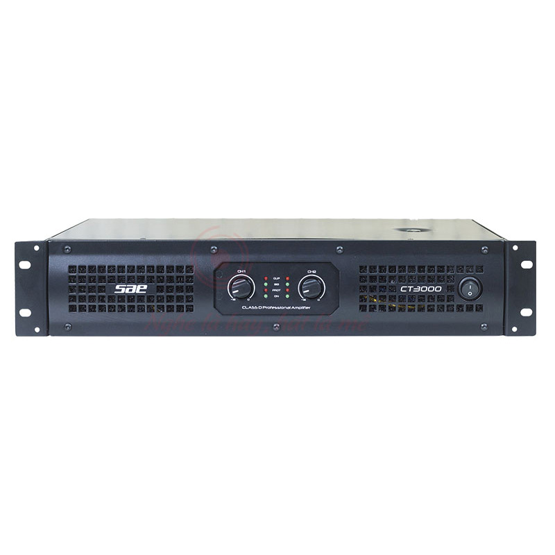 Cục đẩy công suất SAE CT3000 hoạt động với công suất 8Ω stereo là 300W, công suất 4Ω stereo là 450W cho chất âm ổn định, mượt mà không xảy ra các hiện tượng ù rè. Tỉ lệ méo tiếng cực thấp ở mức ≤ 0.1% nên không gây ảnh hưởng đến chất lượng âm thanh trong dàn, dải âm được trung thực hơn.