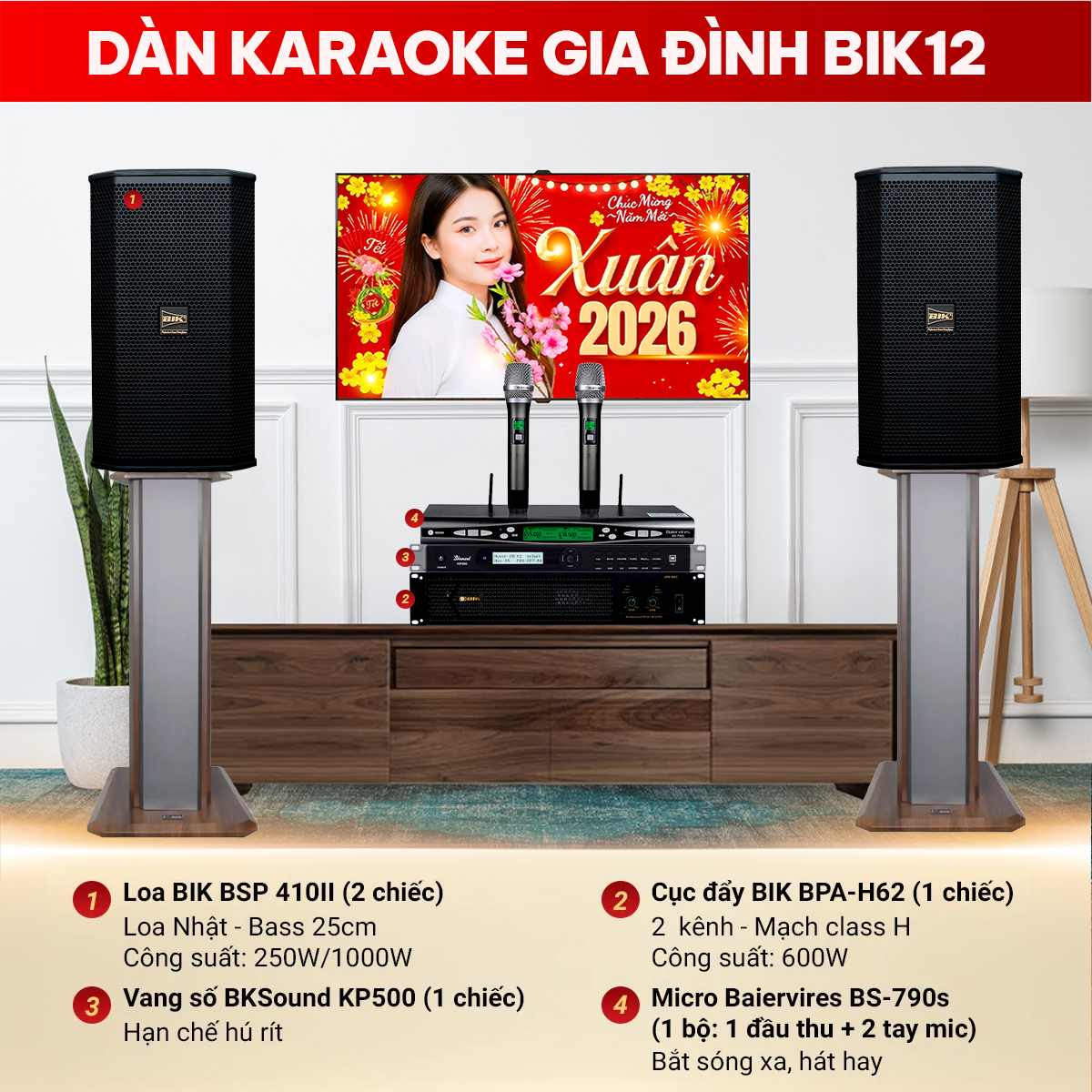 Cấu hình dàn karaoke gia đình BIK 12 gồm các thiết bị :
