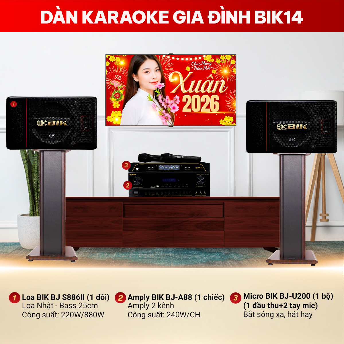 Cấu hình dàn karaoke gia đình BIK 14 gồm: