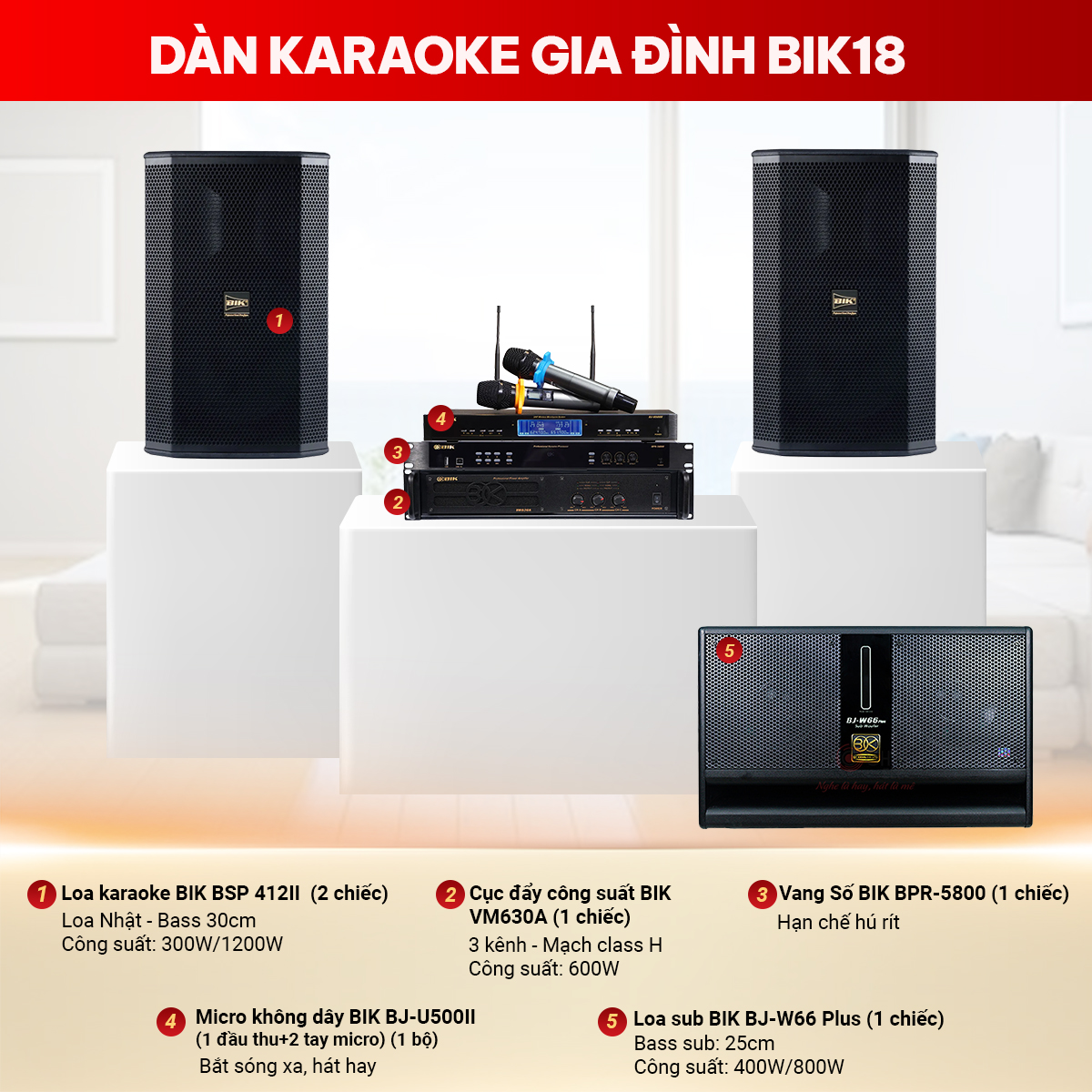 Đặc điểm chi tiết các thiết bị có trong dàn karaoke gia đình BIK 18