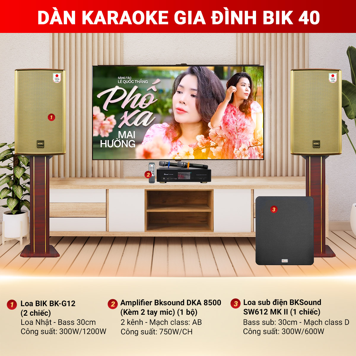 Cấu hình thiết bị có trong Dàn karaoke gia đình BIK 40 gồm: