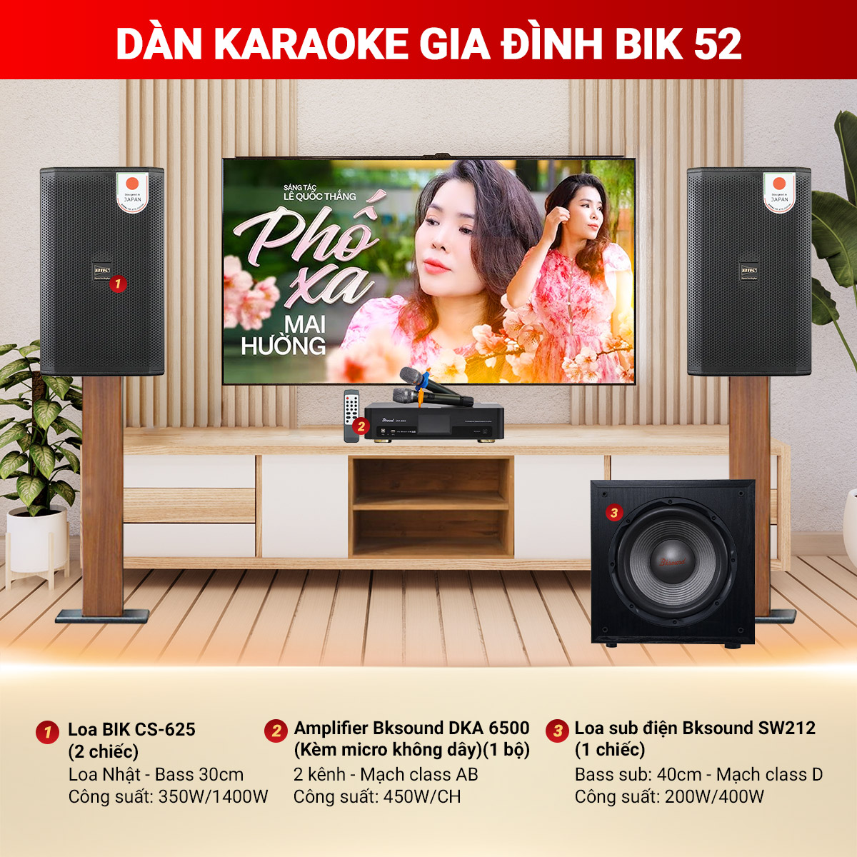 Cấu hình Dàn karaoke gia đình BIK 52 gồm: