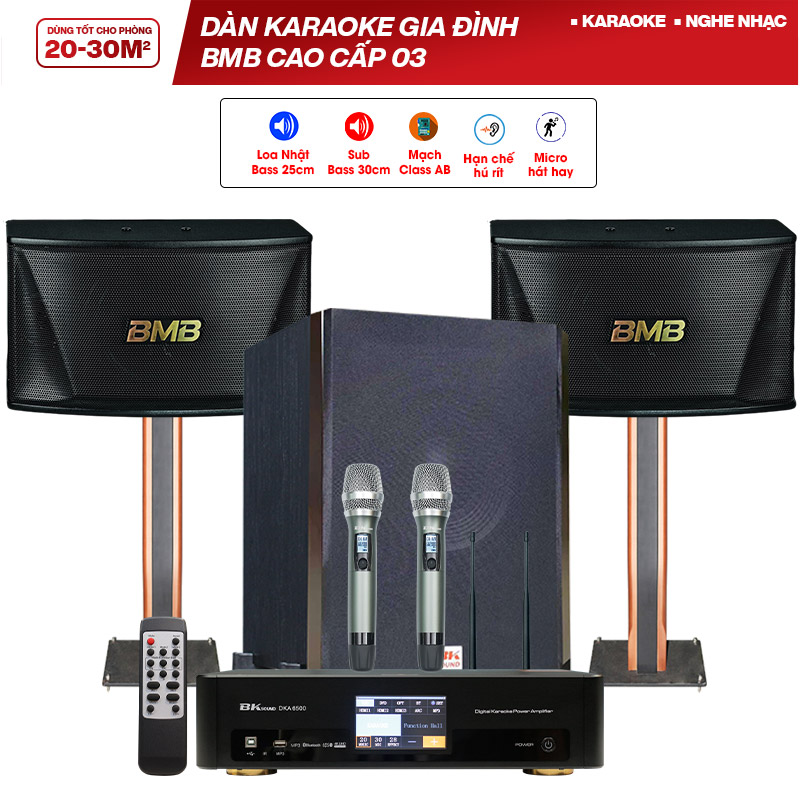 Cấu hình Dàn karaoke gia đình BMB cao cấp 03 bao gồm các thiết bị: