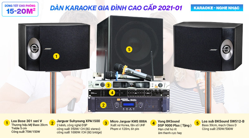 Cấu hình Dàn karaoke gia đình cao cấp 2021-01 gồm các thiết bị :