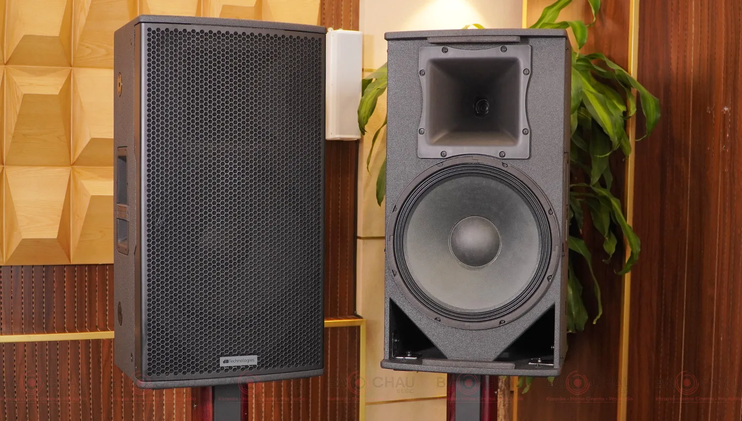Trái tim của bộ dàn là 2 loa dBTechnologies VIO X15 – mẫu loa được sản xuất hoàn toàn tại Italy, từng đạt danh hiệu “Loa full active hay nhất” do người dùng ProSoundWeb bình chọn. VIO X15 sở hữu thiết kế 2 đường tiếng với bass 40cm cuộn coil 3 inch Neodymium và treble 3.5cm, tích hợp ampli Digipro G3 mạch Class D công suất RMS 900W, kết hợp bộ xử lý DSP cao cấp và bộ lọc FIR tuyến tính, mang đến âm thanh sắc nét, giàu chi tiết và mạnh mẽ đến từng dải tần.
