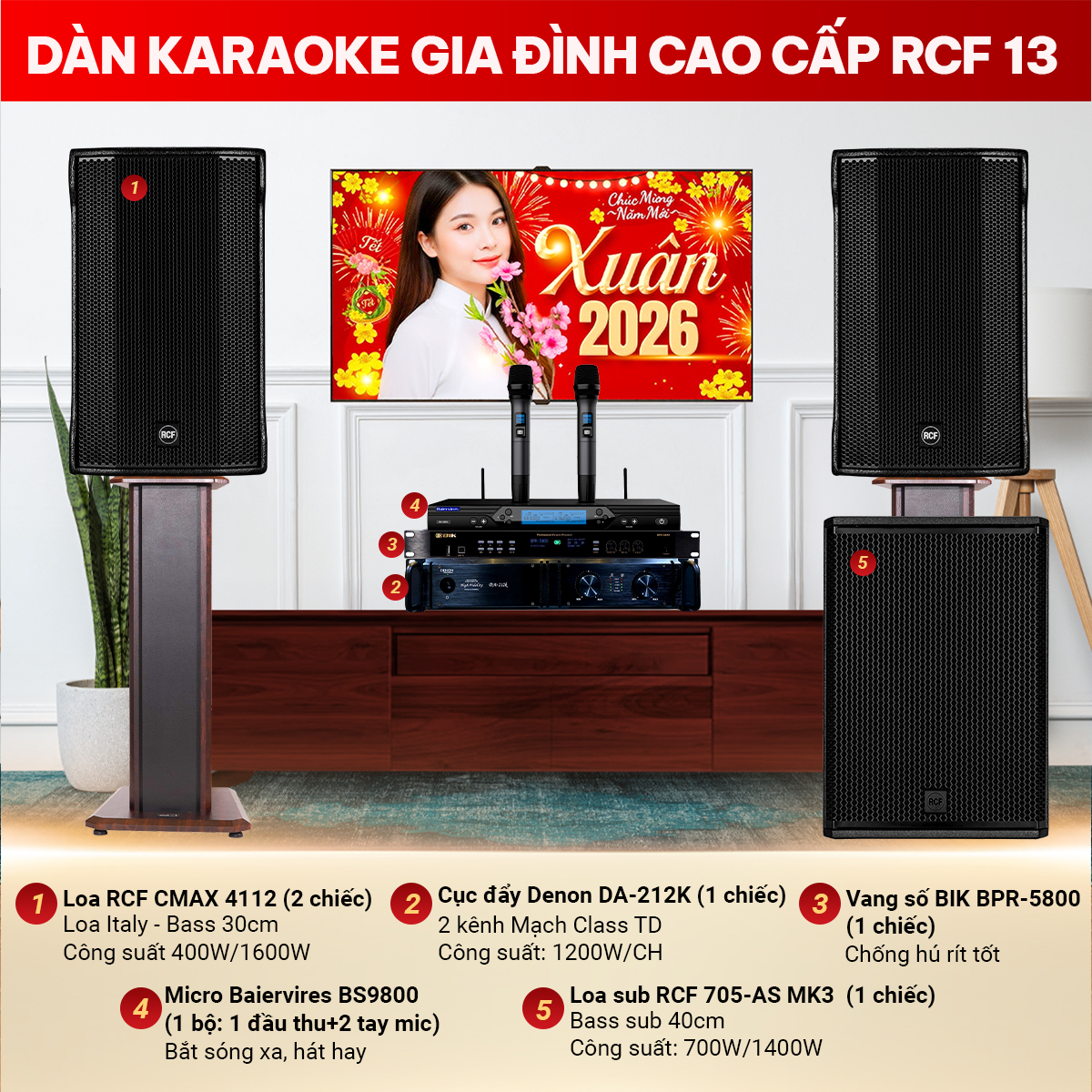 Cấu hình Dàn karaoke gia đình cao cấp RCF 13 gồm: