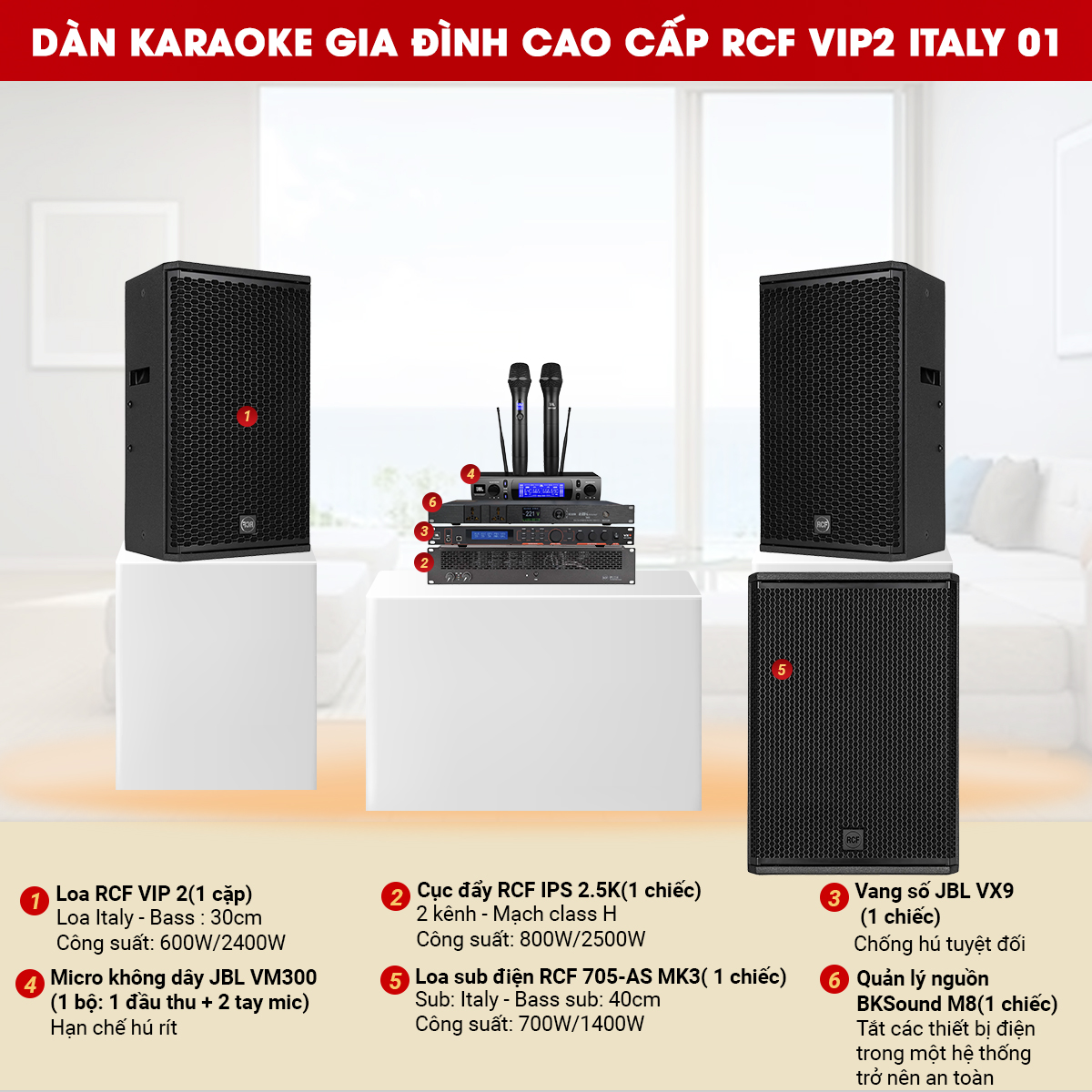 Cấu hình Dàn karaoke gia đình cao cấp RCF VIP 2 Italy 01 gồm: