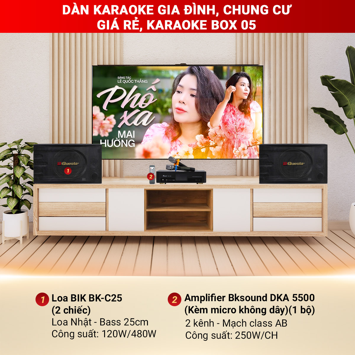Cấu hình Dàn karaoke gia đình, chung cư giá rẻ, karaoke box 05 gồm: