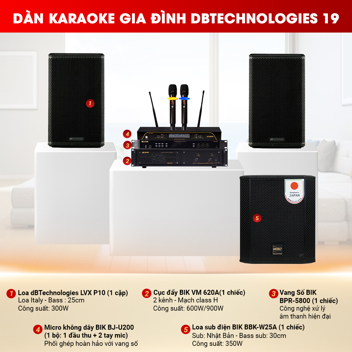 Cấu hình Dàn karaoke gia đình dBTechnologies 19 bao gồm: