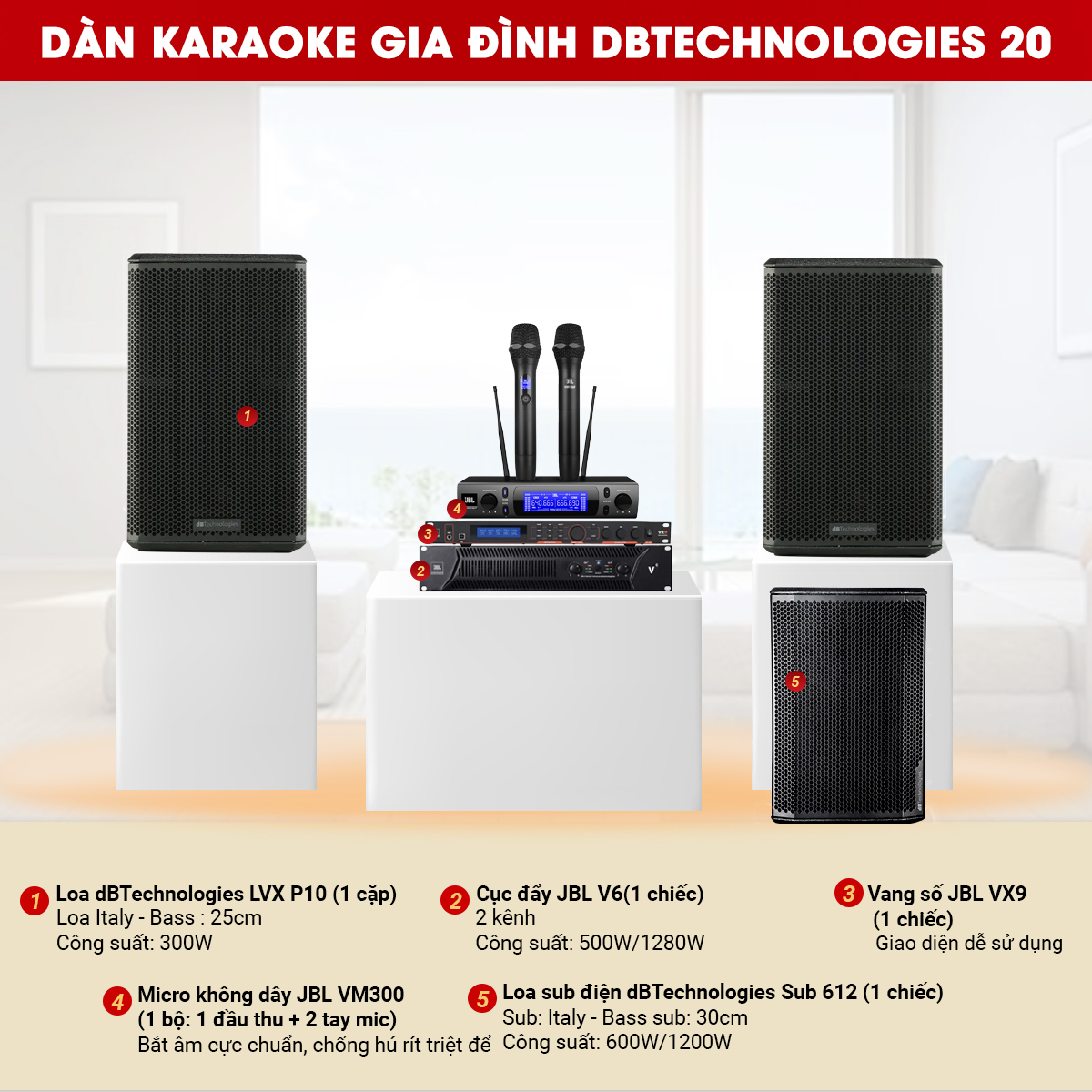 Cấu hình bộ Dàn karaoke gia đình dBTechnologies 20 bao gồm: