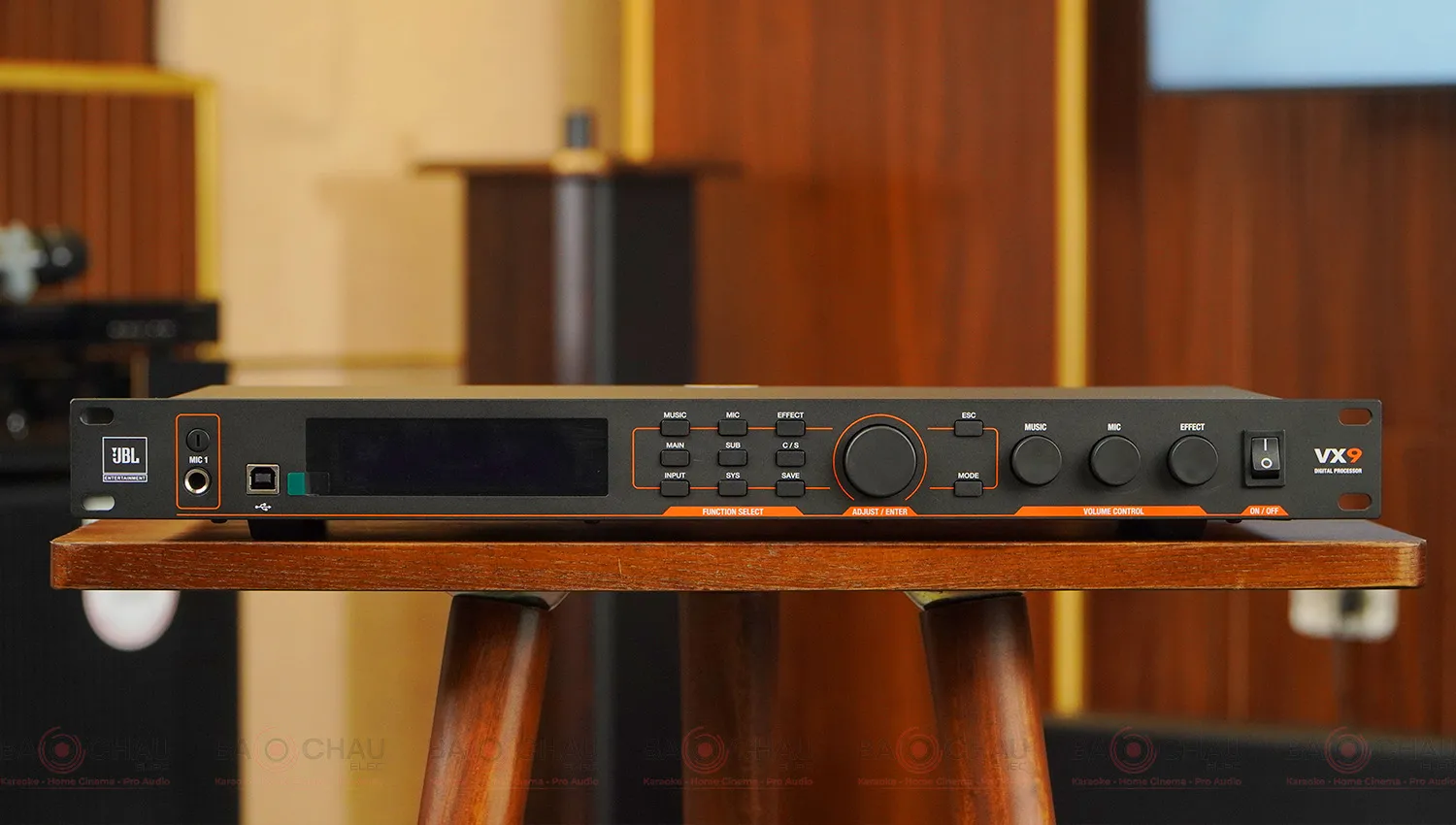Vang số JBL VX9 đóng vai trò như “bộ não xử lý âm thanh” của toàn bộ dàn karaoke. VX9 được trang bị bộ DSP mạnh mẽ, cung cấp đầy đủ các hiệu ứng thiết yếu cho karaoke như: Echo – Reverb – Delay, giúp giọng hát mềm mại, mượt mà và chuyên nghiệp.