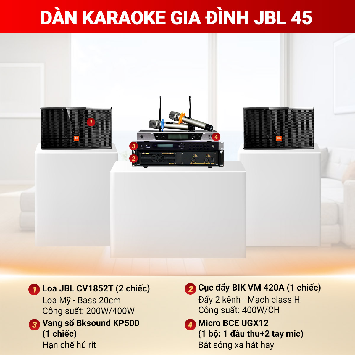 Cấu hình thiết bị Dàn karaoke gia đình JBL 45 gồm: