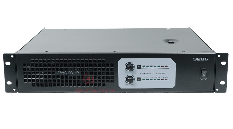 Dòng cục đẩy 2 kênh Famousound 3206 sở hữu hệ thống kinh kiện chắc chắn, thiết kế gọn gàng, chắc chắn cho người dùng dễ dàng lắp đặt, bố trí trong không gian giải trí của mình.