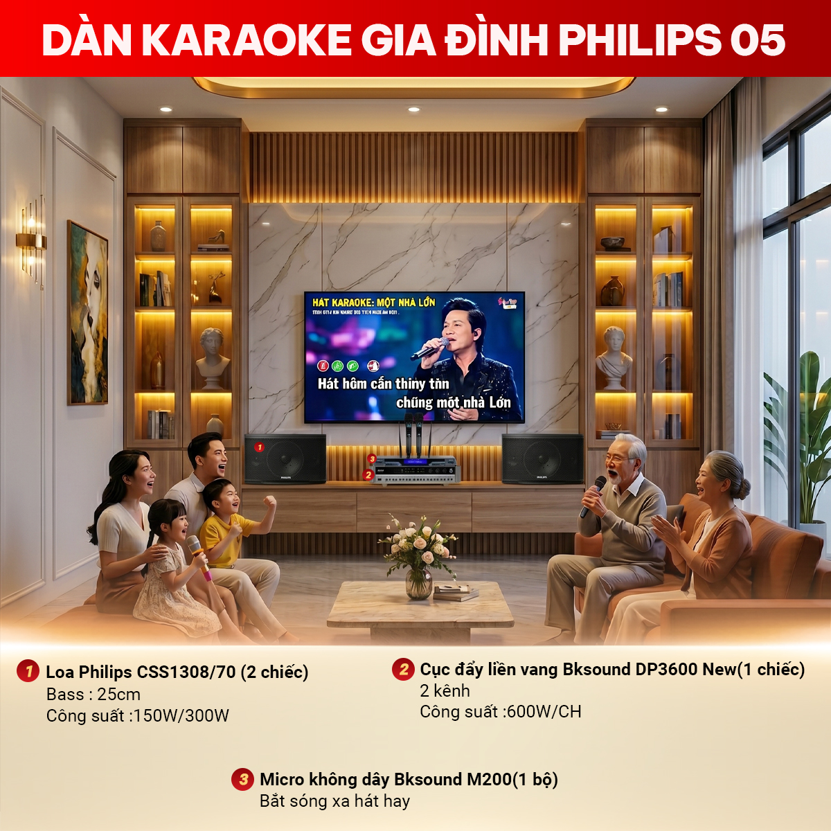 Nếu bạn đang tìm một dàn karaoke gia đình gọn gàng, dễ hát và có chất âm rõ ràng, thì cấu hình Dàn karaoke gia đình Philips 05 là một lựa chọn rất đáng tham khảo. Bộ dàn từ Philips và BIK sự kết hợp hướng tới tiêu chí dễ sử dụng nhưng vẫn đảm bảo âm thanh mạnh mẽ cho không gian gia đình. Với khả năng tái tạo giọng hát rõ, nhạc nền cân bằng và kết nối linh hoạt, bộ dàn phù hợp cho cả nhu cầu hát karaoke lẫn nghe nhạc giải trí.