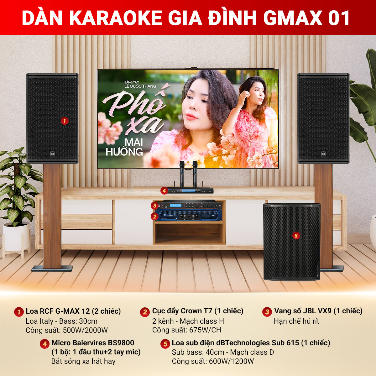 Cấu hình chi tiết dàn Dàn Karaoke gia đình RCF GMAX 01 bao gồm: