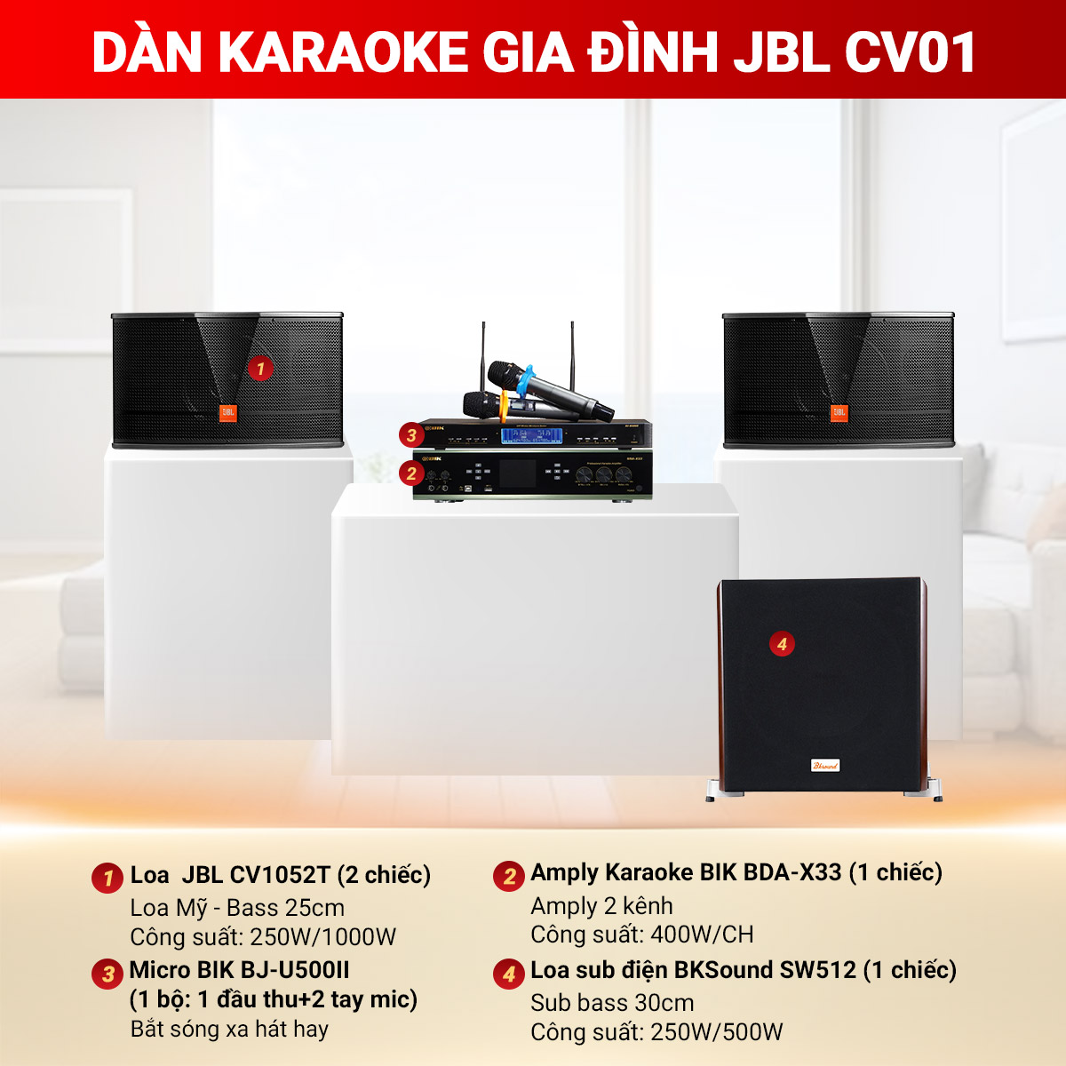 Cấu hình Dàn karaoke gia đình JBL CV01 gồm: