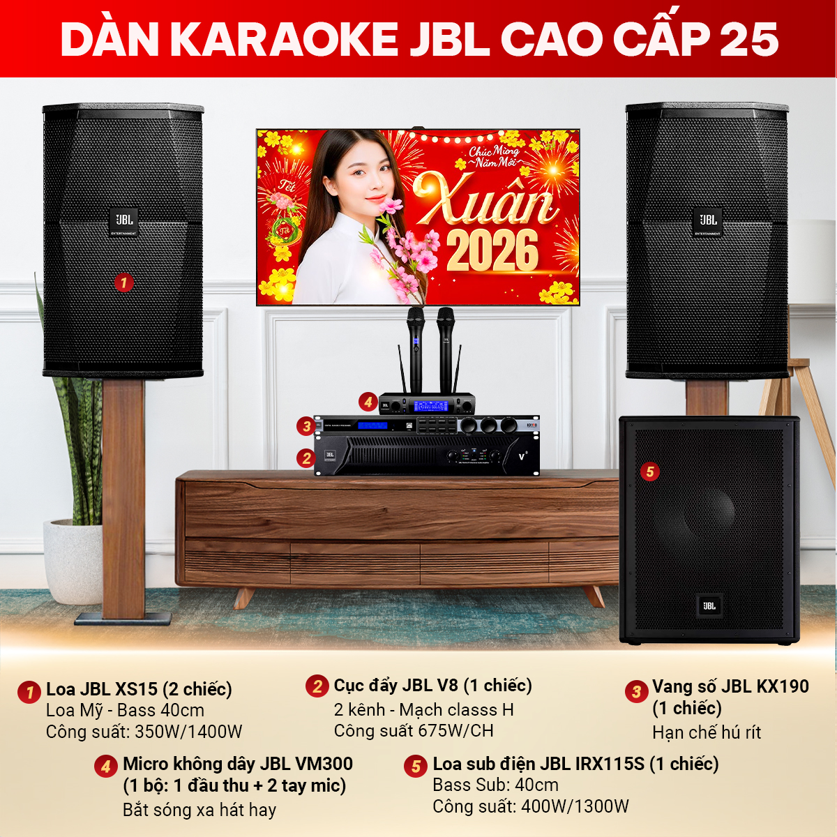 Cấu hình các thiết bị có trong Dàn karaoke JBL cao cấp 25 gồm: