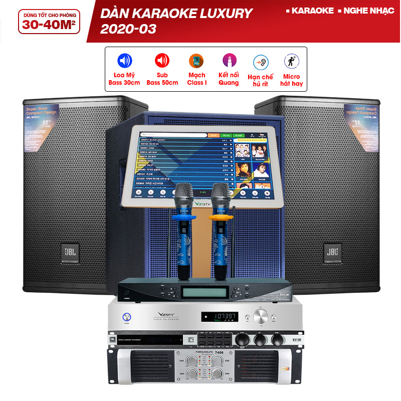 Dàn karaoke Luxury 2020 - 03 mang đến cho người dùng những tính năng hiện đại, chuyên dụng giúp quý khách hàng tận hưởng những giai điệu âm thanh chi tiết, thanh thoát, tỏa đều khắp không gian giải trí với diện tích khoảng 20 – 30m2.