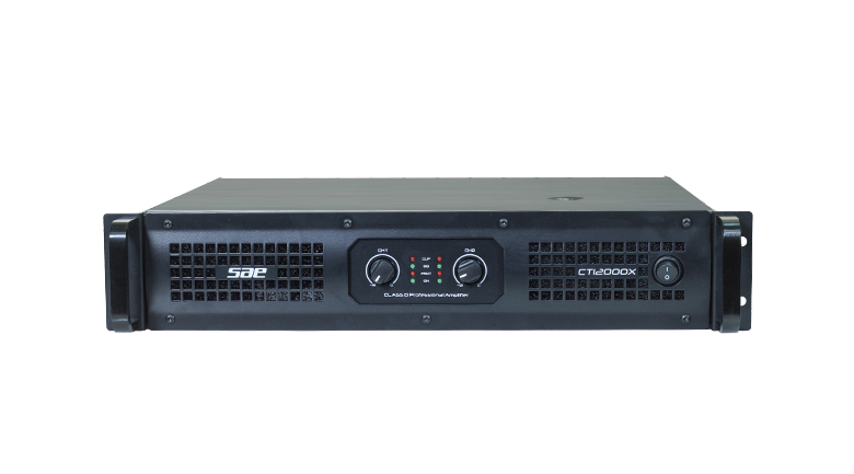 Dòng cục đẩy 2 kênh SAE CT12000X sử dụng mạch Class D với nhiều mức công suất khác nhau 8 Ohms Stereo là 1200W x 2CH, ở 4 Ohms Stereo là 2100W x 2CH và ở 8 Ohms Bridge có thể đạt đến 4200W.