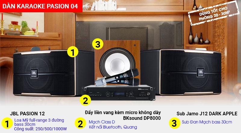 Cấu hình dàn karaoke JBL Pasion 04 gồm các thiết bị :