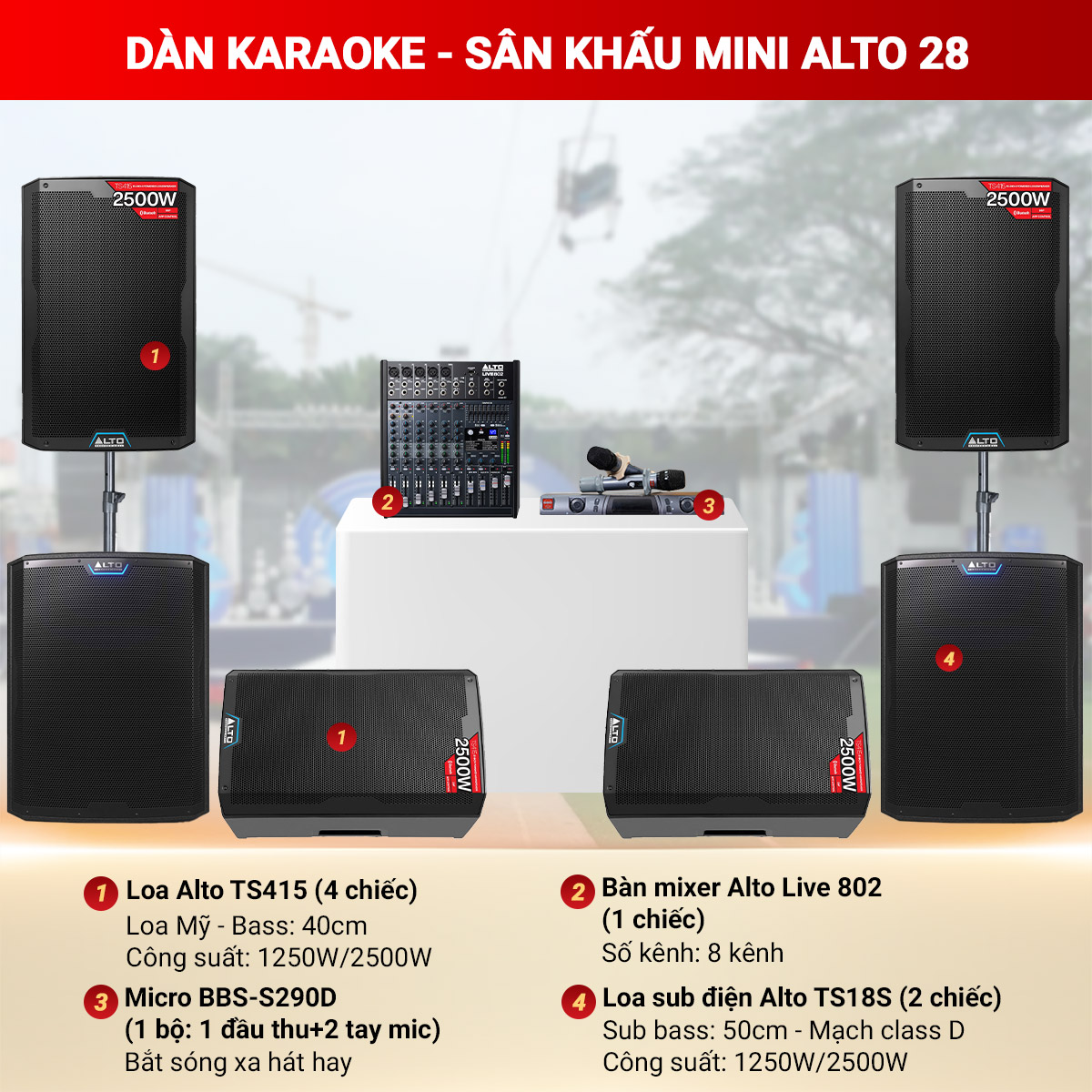 Cấu hình thiết bị có trong Dàn karaoke - Sân khấu Mini Alto 28 gồm: