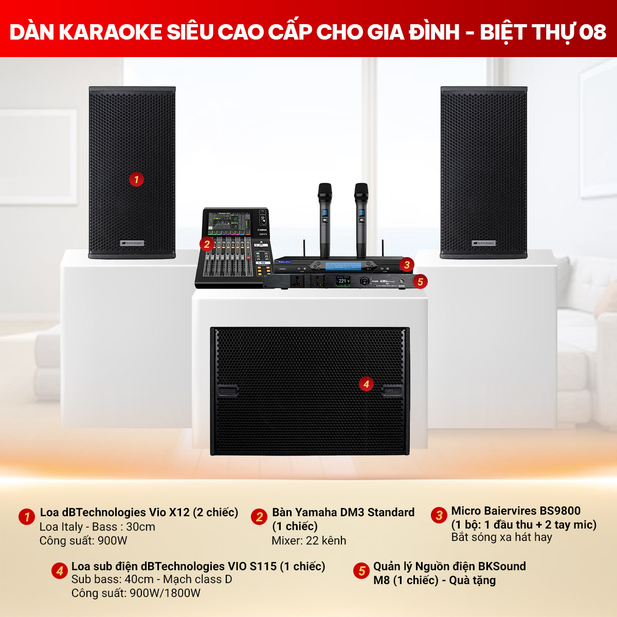 Cấu hình Dàn karaoke siêu cao cấp cho gia đình - biệt thự 08 gồm: