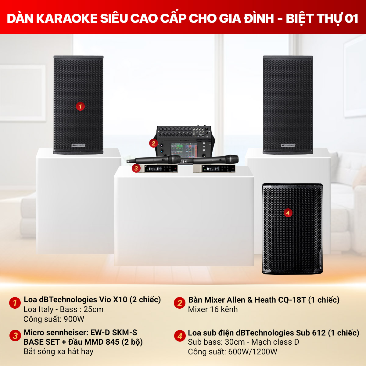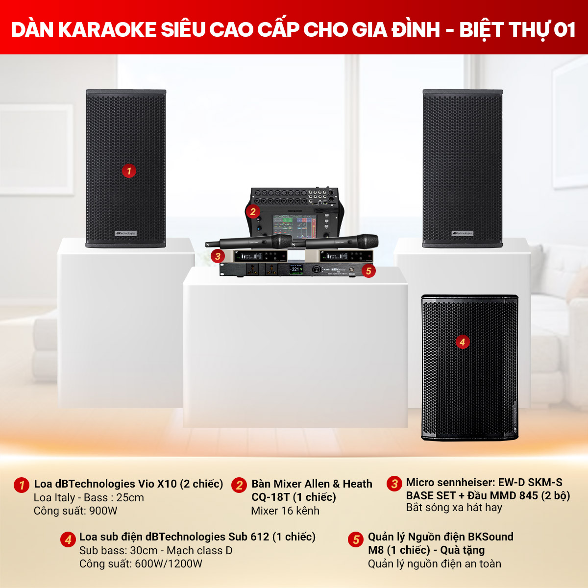 Cấu hình thiết bị Dàn karaoke siêu cao cấp cho gia đình - biệt thự 01 gồm: