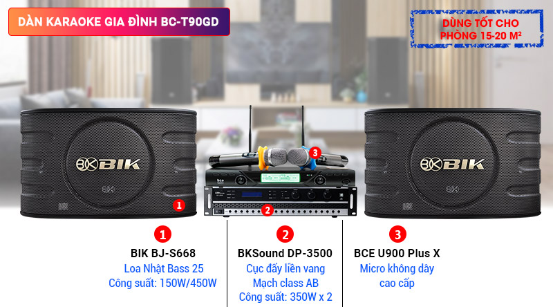 Cấu hình dàn karaoke gia đình BC-T90GD gồm các thiết bị