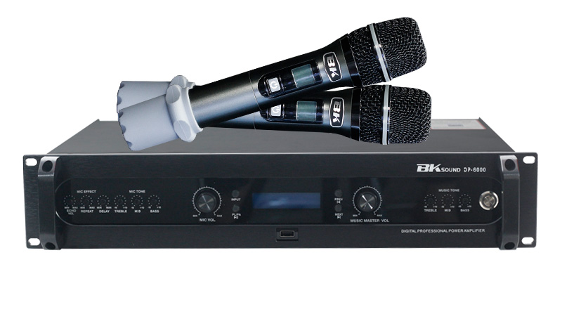 Bộ sản phẩm gồm Đẩy liền vang BKSound DP6000 và 2 micro không dây BKSound.