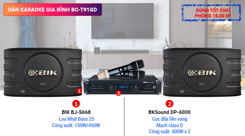 Cấu hình dàn karaoke gia đình BC-T91GD gồm các thiết bị