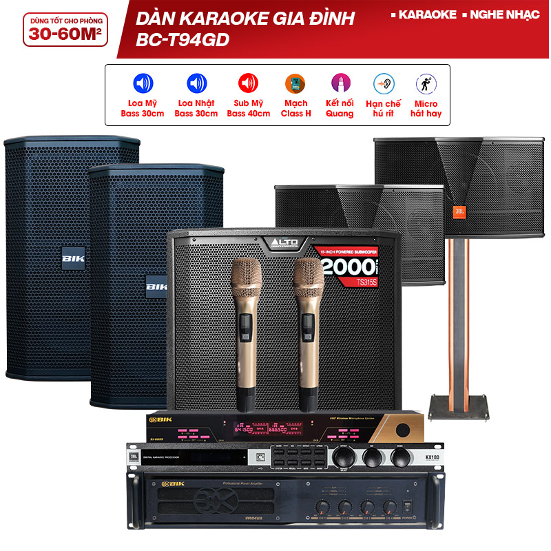 Cấu hình dàn karaoke gia đình BC-T94GD gồm các thiết bị