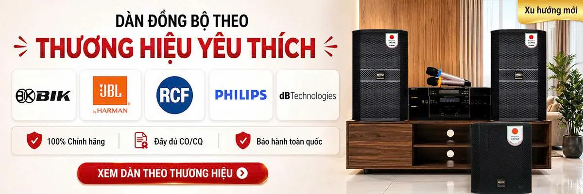 Dàn karaoke đồng bộ hay nguyên bộ chính hãng là một bộ sản phẩm karaoke được các hãng chuyên sản xuất thiết bị âm thanh uy tín cung cấp, đến từ cùng một thương hiệu. Các thiết bị trong dàn karaoke đồng bộ chính hãng được thiết kế và sản xuất để tương thích hoàn hảo với nhau, giúp tạo ra chất lượng âm thanh và hiệu suất tối đa.