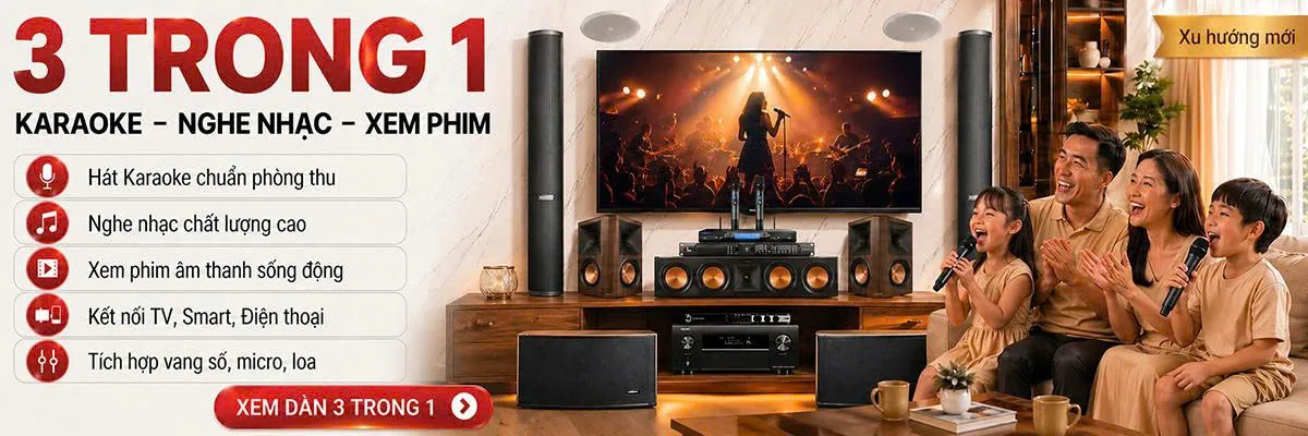 Dàn karaoke gắn tường là giải pháp âm thanh hiện đại, giúp tiết kiệm không gian và tăng tính thẩm mỹ cho phòng khách hoặc phòng giải trí gia đình. Với thiết kế loa treo tường gọn gàng, dây nối được bố trí tinh tế, hệ thống vẫn đảm bảo âm thanh mạnh mẽ, rõ tiếng, hát nhẹ và ít hú rít.