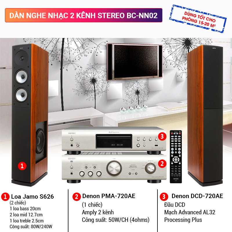 Xem thêm những bộ dàn âm thanh nghe nhạc khác tại Bảo Châu elec. Dàn âm thanh nghe nhạc chuyên dụng được cấu hình từ những thiết bị âm thanh nghe nhạc nổi tiếng hàng đầu hiện nay như loa jamo, amply Denon...