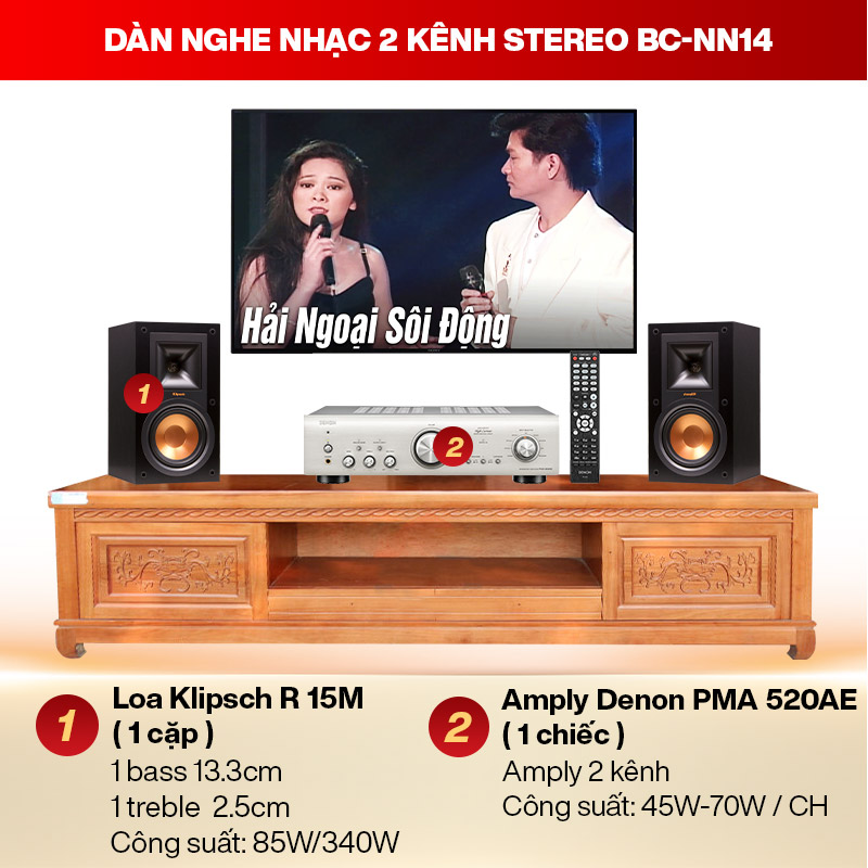 Cấu hình của dàn nghe nhạc 2 kênh Stereo BC-NN14 bao gồm