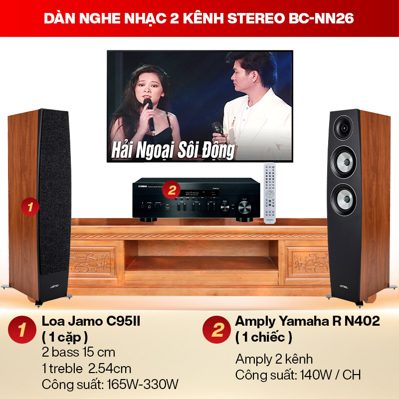 Cấu hình dàn nghe nhạc 2 kênh Stereo BC-NN26 gồm