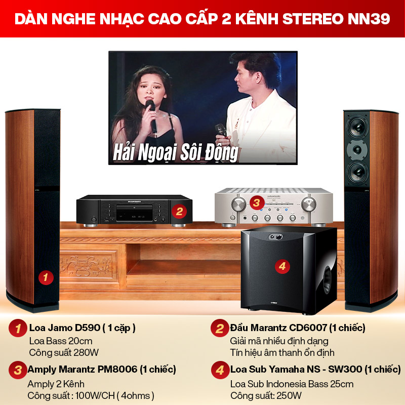 Cấu hình Dàn nghe nhạc cao cấp 2 kênh Stereo NN39 gồm :
